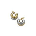 Gli Orecchini Duo Glossy mixano volumi morbidi e finiture ultra-luminose, combinando oro e argento in un design moderno e versatile.